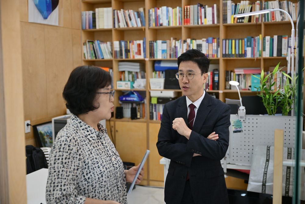그  진지함으로 침묵이 흐르는  조용한 분위기…