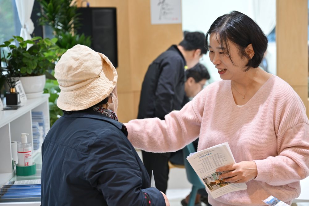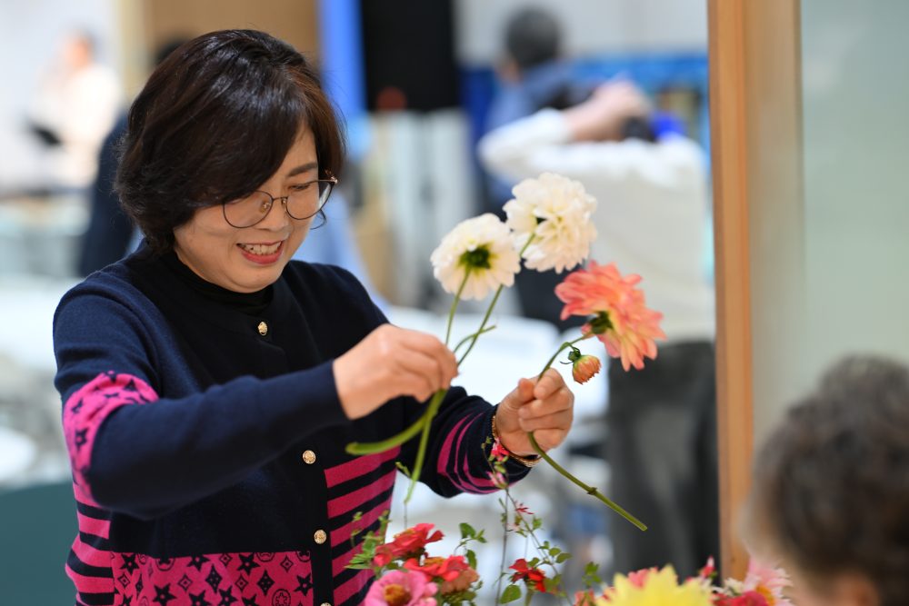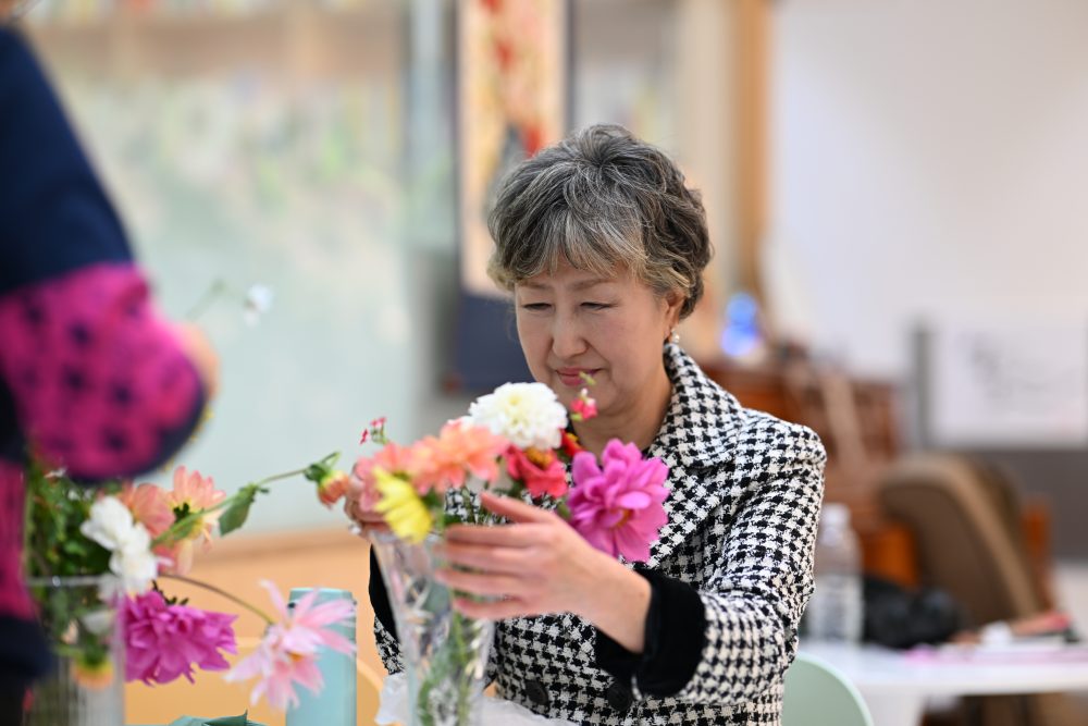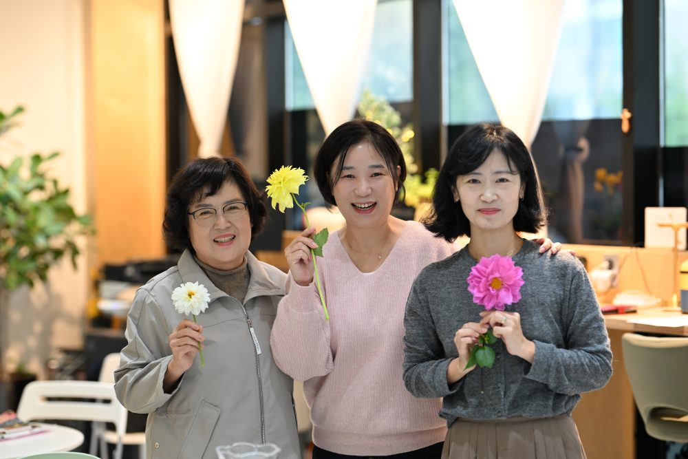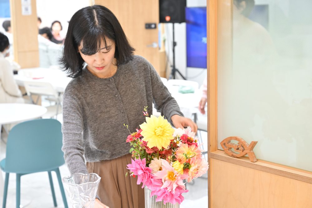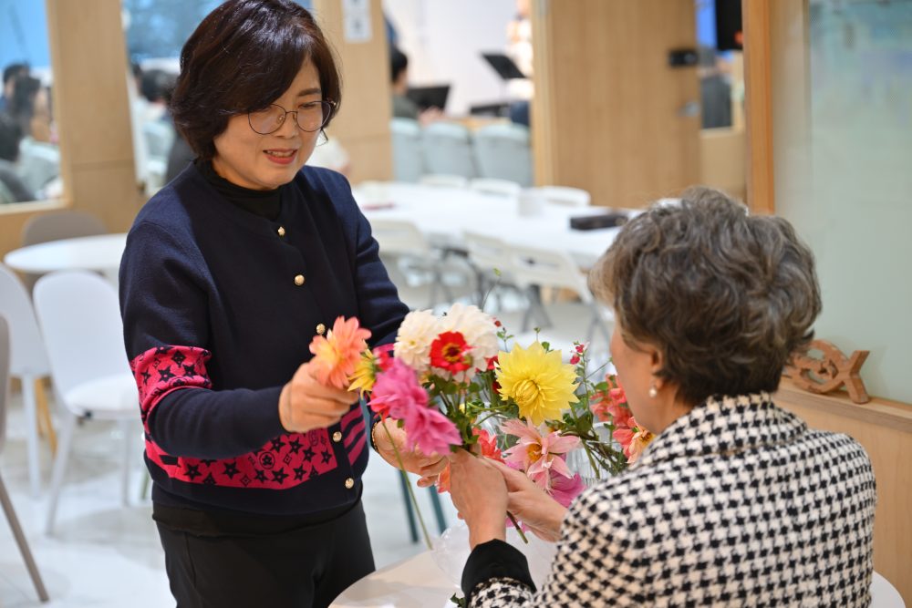 예쁜 꽃을 가져와 교회 예배당을 꾸미는 성도님들..