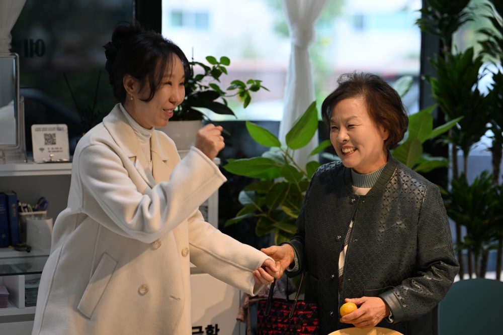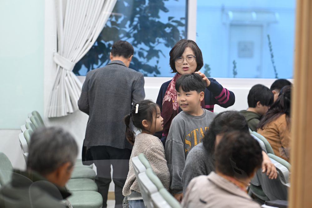 오랜만에 만나는 손자 손녀를 챙기시는 권사님..