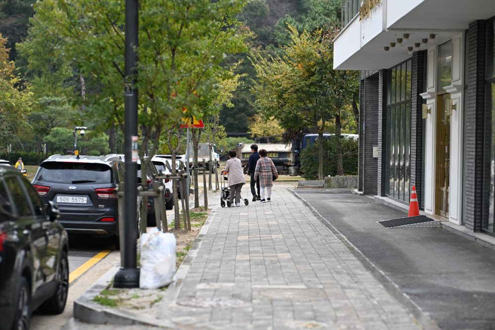 성도와 함께 아들과 함께 걸어가는 성도님의 발걸음이 아름답게 보이는 거리 입니다.