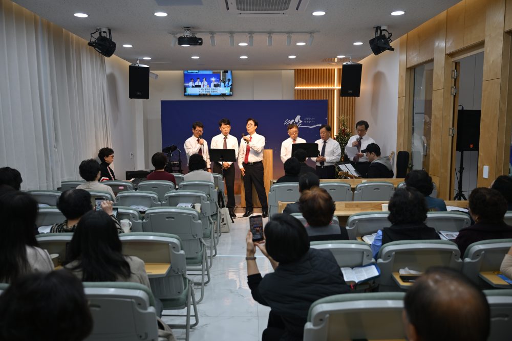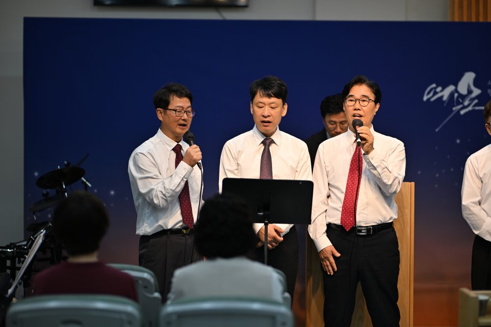 묵직하고 아름다운 하모니로 남성도 여러분이 하나님께 찬양을 드렸습니다.