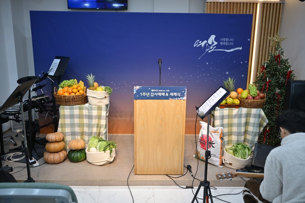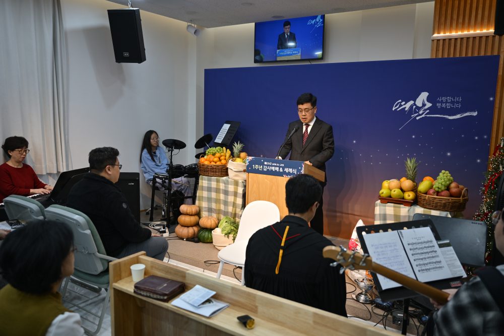 오늘은 교회가 1주년 생일을 맞이하여 기념예배로 드리며, 또한 추수감사절 예배로 함께 드립니다. 그 만큼 풍성하고 은혜넘치는 행복한 날입니다. 오늘은 교회설립이후 처음으로 세례식이 있는 날이기도 합니다. 예수로광염교회에 다섯분의 새로운 세례교인이 탄생하는 날입니다.