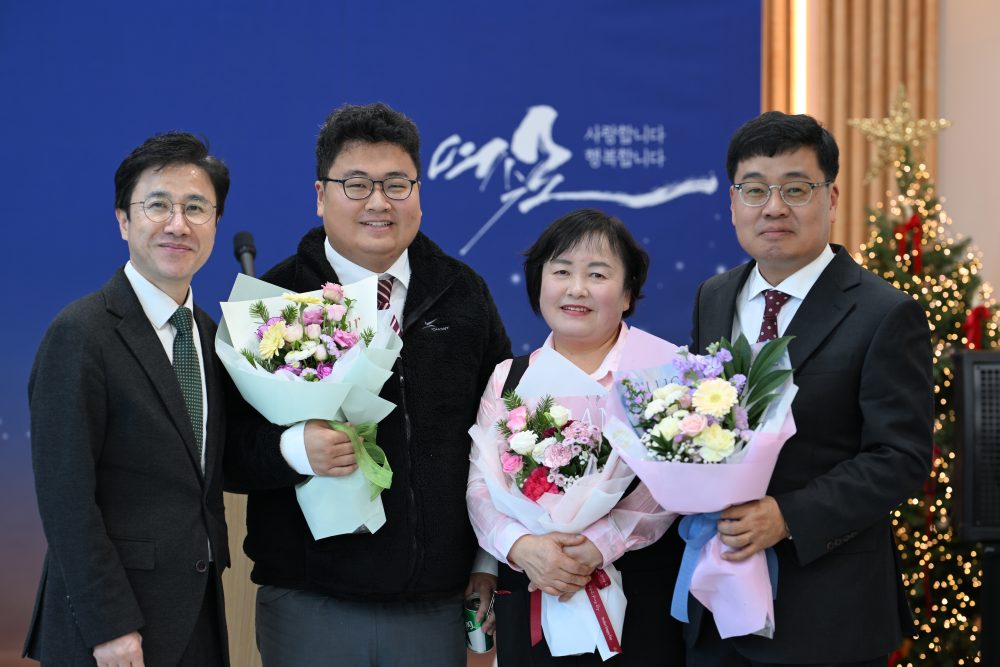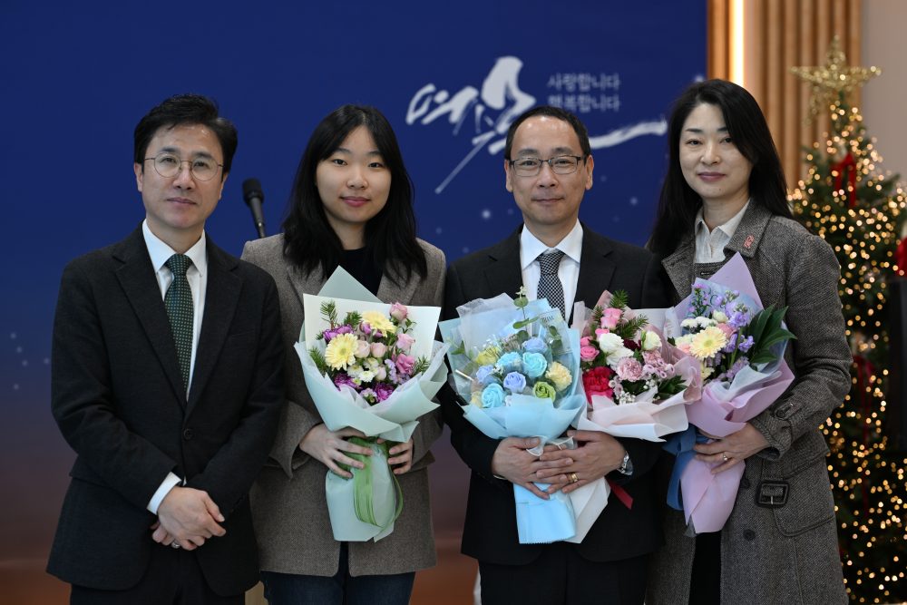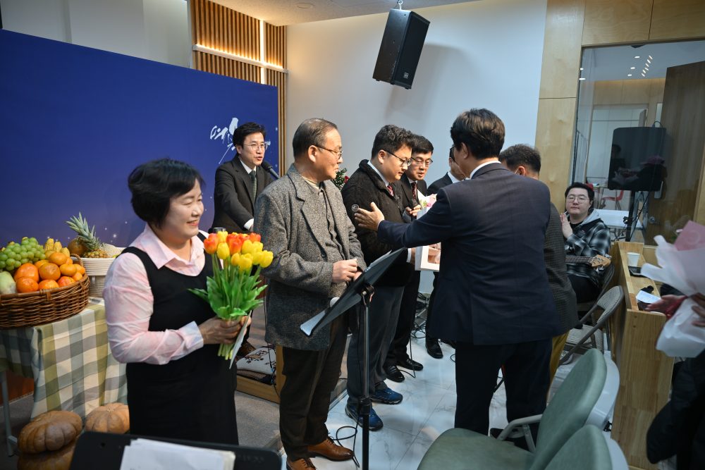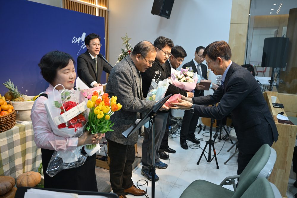 기쁨을 함께 하는 축하의 꽃다발 선물이 증정되었습니다.
