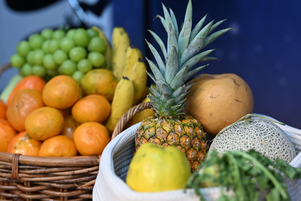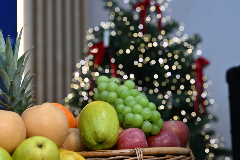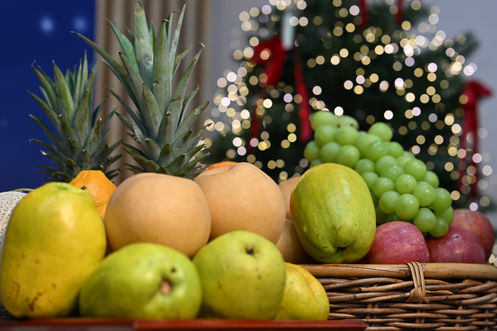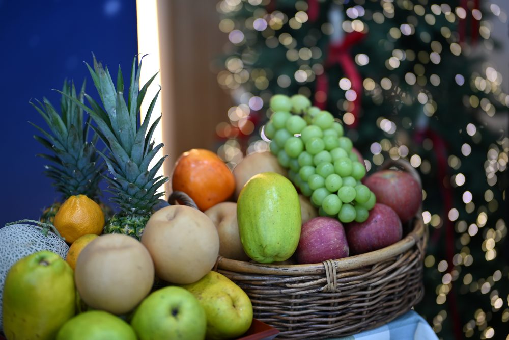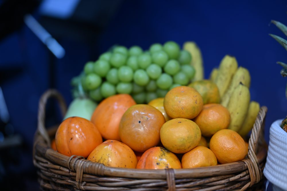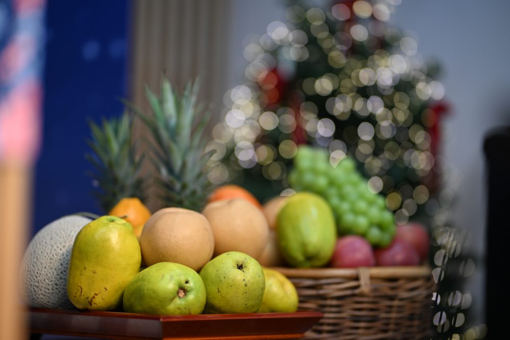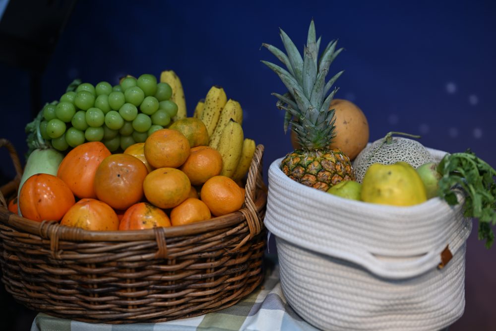 성도 여러분이 각 가정에서 가져온 과일들이 바구니에 예쁘게 모여 있네요
