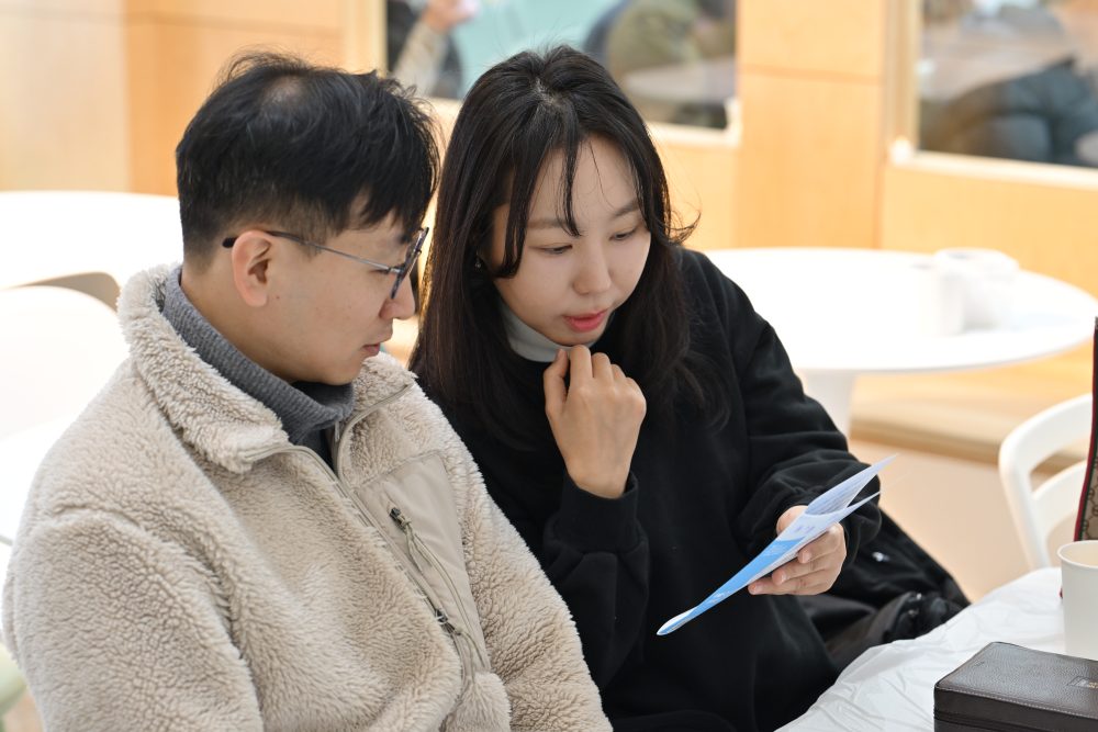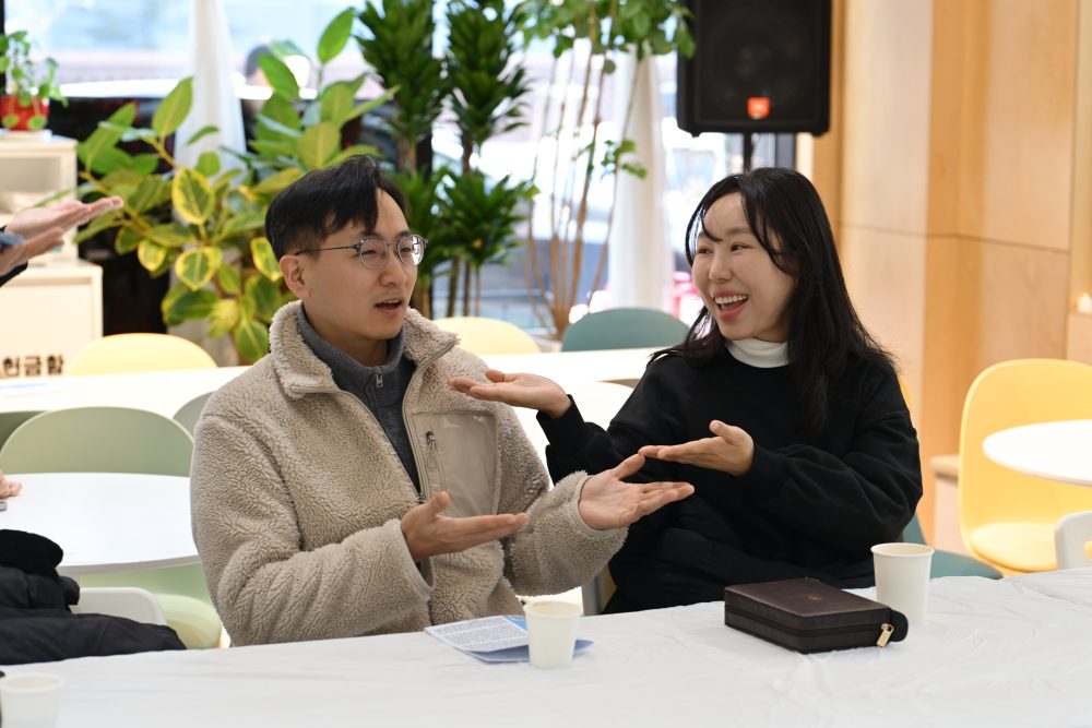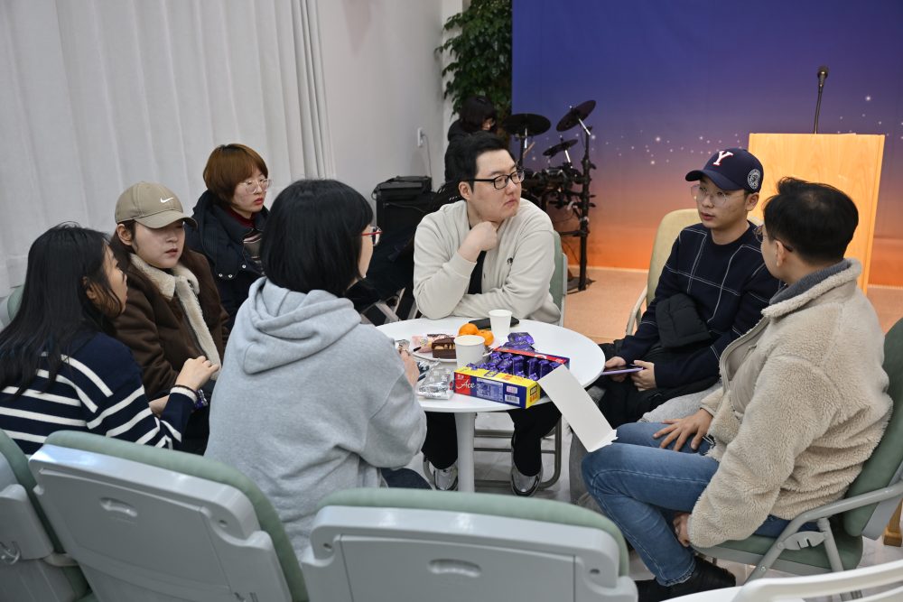 청년들이 오늘은 자유롭게 이야기 꽃을 피웁니다.