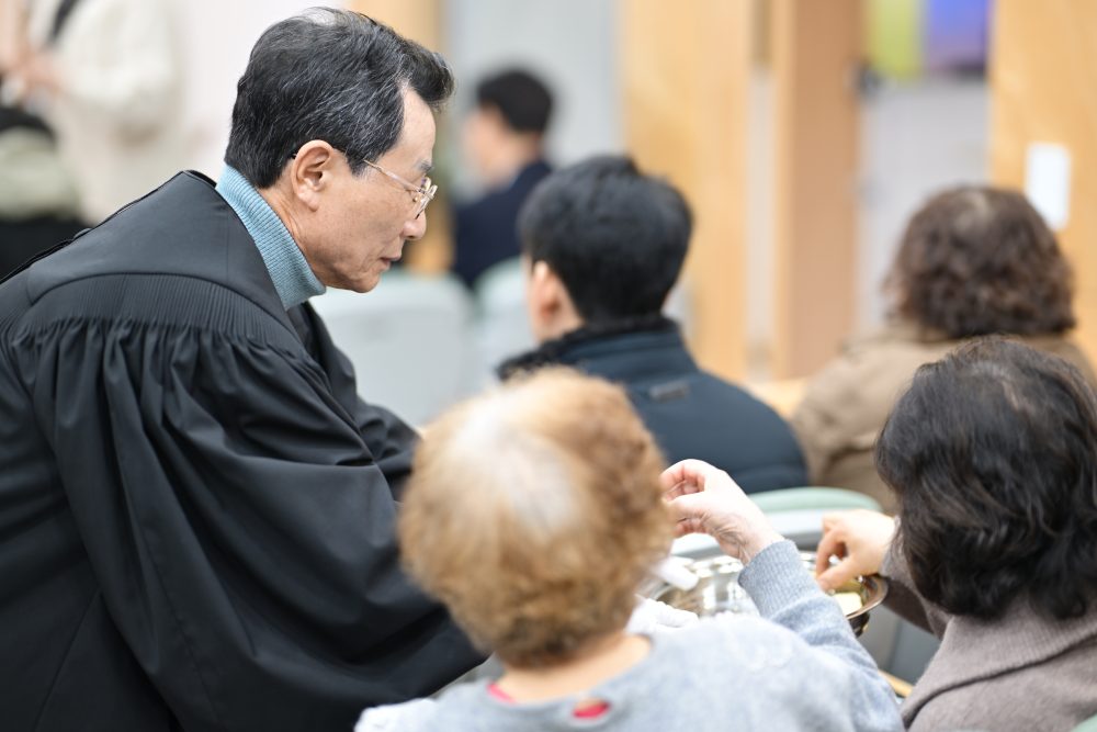 성찬식이 진행되는 동안 강상민 형제와 김묘향 권사님이 아름다운 연주로 하나님을 찬양하였습니다.
