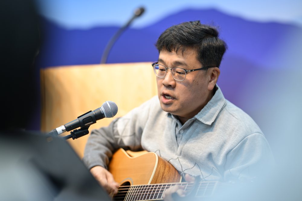 찬양팀이 예배를 준비하고 있습니다. 그 하나님을 향한 소중한 마음을 느껴봅니다.