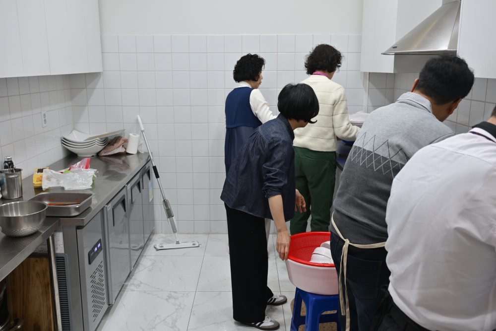 여성도들이 주방 청소를 도와주고 계시네요. 감사와 자원함이 넘치는 시간입니다.
