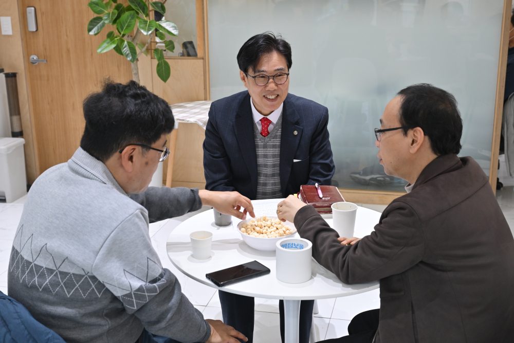 청년들도 목사님과 함께 말씀을 나누고 있습니다.