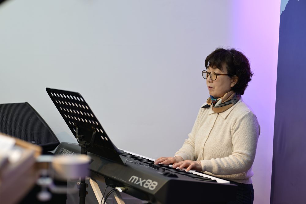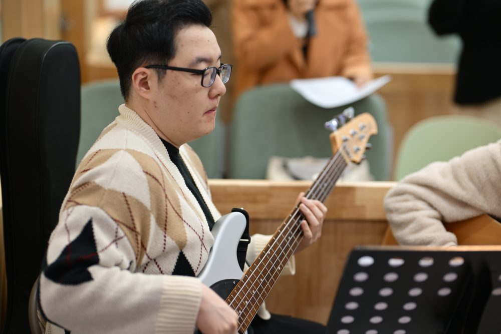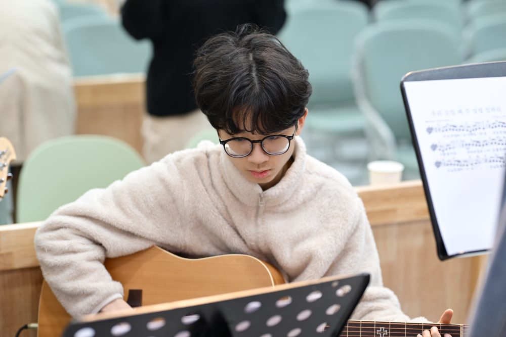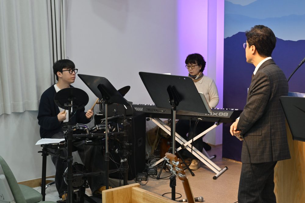 찬양팀이 연습을 하고 있습니다. 오늘은 악기 위치들이 조금씩 바뀌었네요. 그래서 그 표정들을 사진이 더 담았습니다.