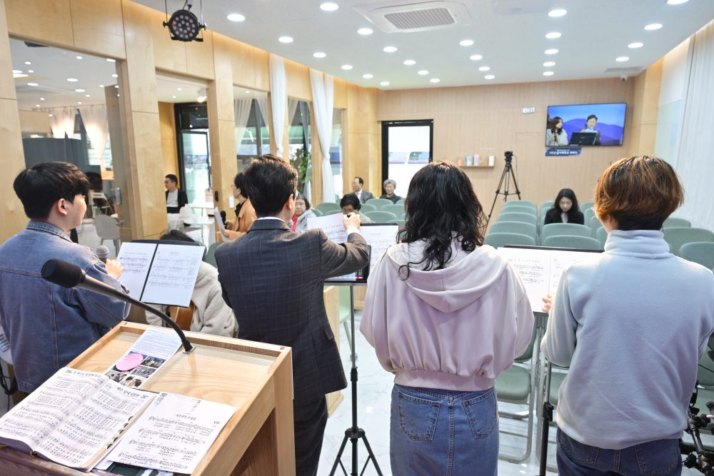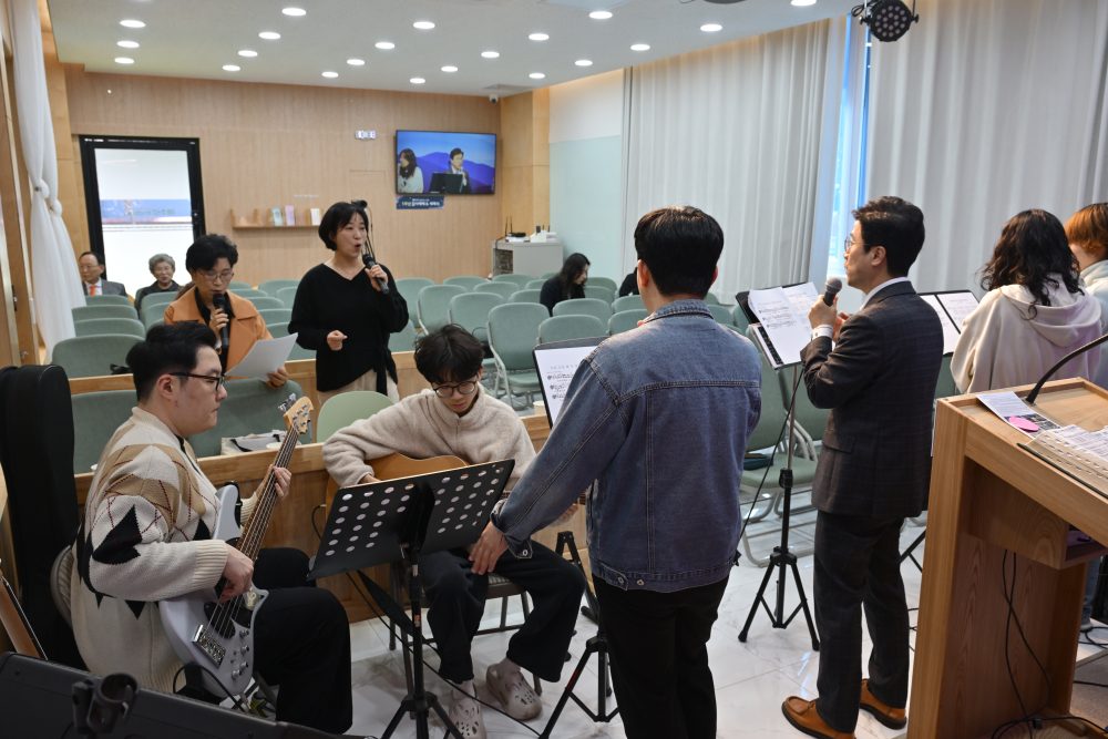 예배당 한켠에서는 중창단 jesusway 이 열심히 연습을 하고 있었어요