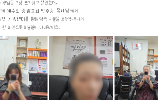 [사진은 우리 교회 미용 후원을 받은 어떤 분이 올린 블로그 감사글 캡쳐] 지난 [...]